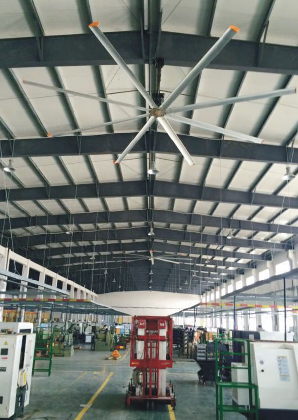 我公司生產(chǎn)的大型工業(yè)吊扇直接懸掛在廠房屋梁下,風(fēng)力柔和,能加快車間空氣流通,有效降低車間內(nèi)溫度,改善車間空氣環(huán)境質(zhì)量,有利于員工的身體健康。